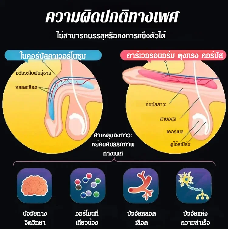 มีประสิทธิภาพ 100% สำหรับผู้ป่วยที่มีระยะเวลามีเพศสัมพันธ์สั้น ไตพร่อง ต่อมลูกหมากอักเสบ ไม่สามารถแข็งตัวได้ และความต้องการทางเพศลดลง